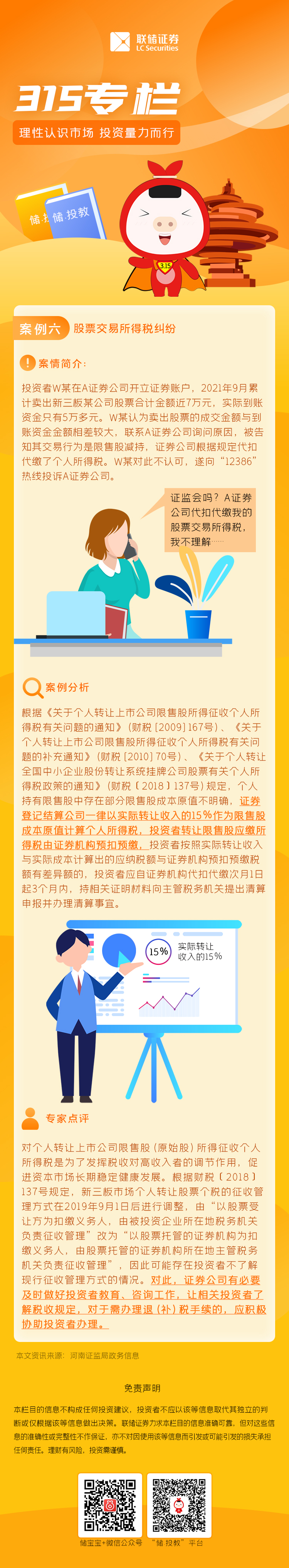 【315专栏】投资者保护典型案例-股票交易所得税纠纷