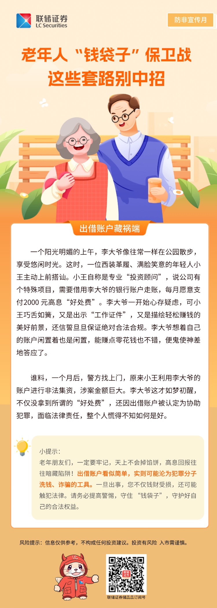 【防非宣传月】老年人“钱袋子”保卫战,这些套路别中招 出借账户藏祸端