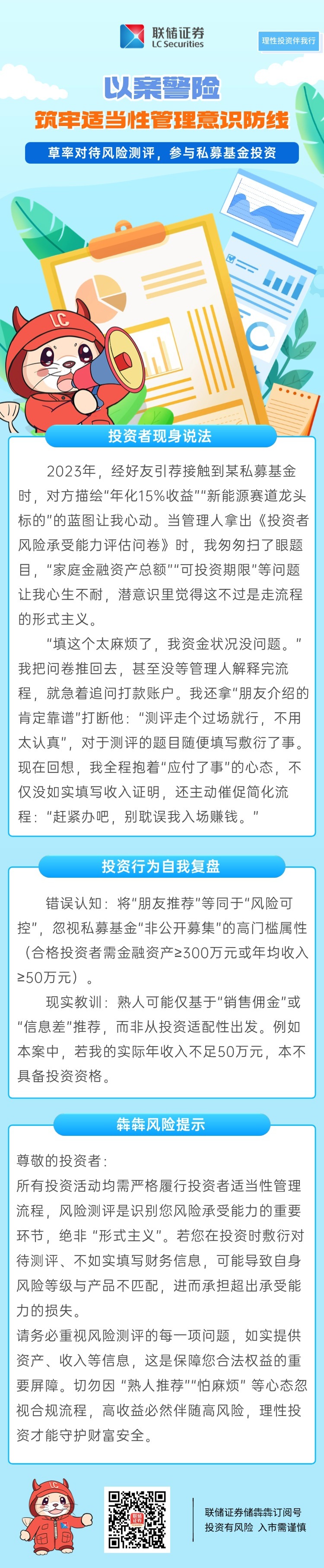 【理性投资伴我行】以案警险 筑牢适当性管理意识防线:草率对待风险测评,参与私募基金投资