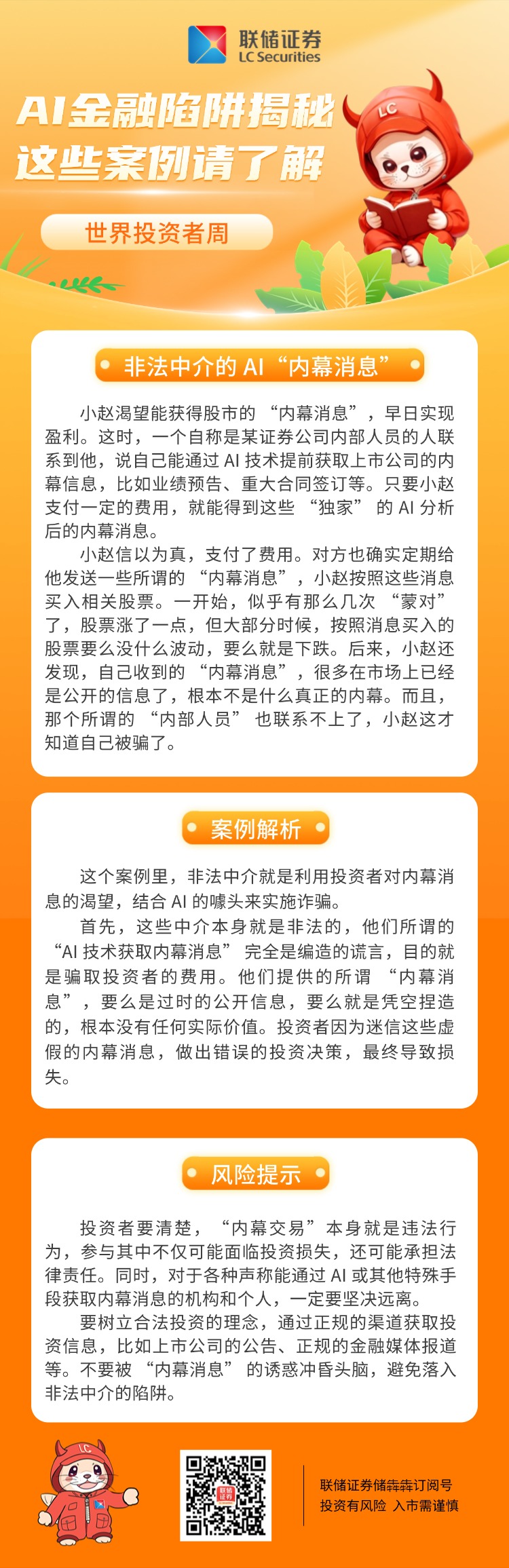 【世界投资者周】AI金融陷阱大揭秘,这些案例请了解:非法中介的 AI“内幕消息”
