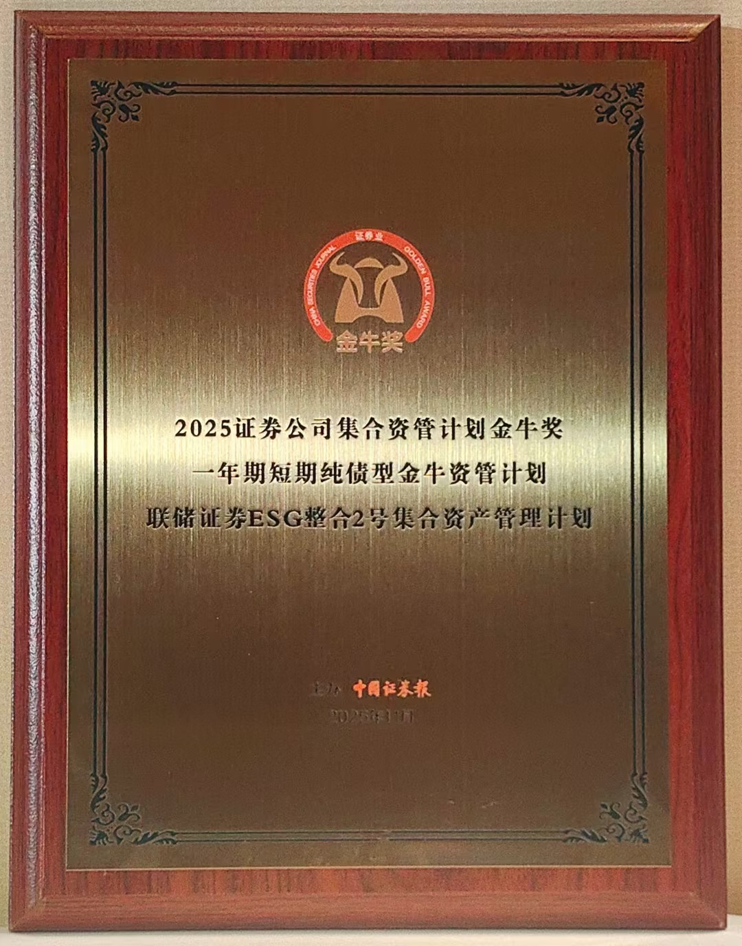 2025年11月8日,在由中国证券报主办的“2025证券业高质量发展大会暨证券业金牛奖颁奖典礼”上,联储证券股份有限公司(以下简称“联储证券”或“公司”)旗下“ESG整合2号集合资产管理计划”荣获一年期短期纯债型金牛资管计划奖项,彰显了公司在可持续金融领域的实力与影响力。