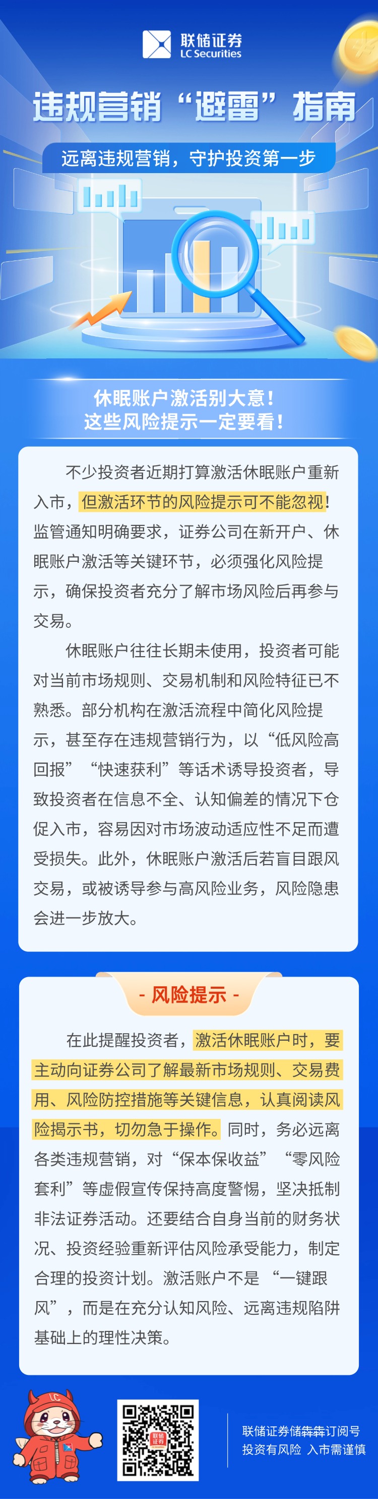【违规营销“避雷”指南】远离违规营销,守护投资第一步:休眠账户激活别大意!这些风险提示一定要看