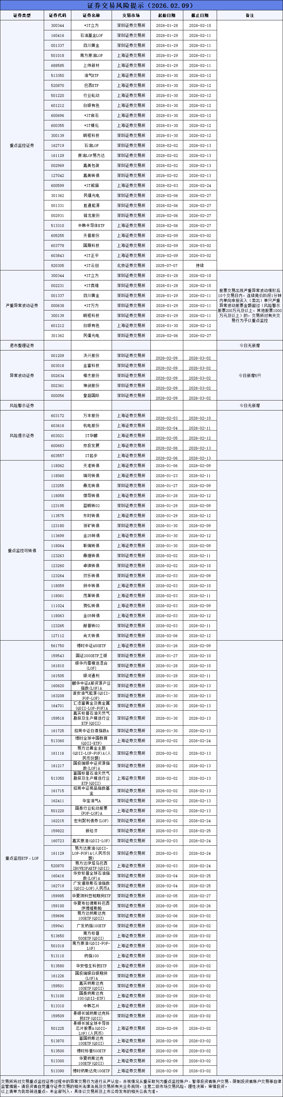 证券交易风险提示(2026年2月9日)