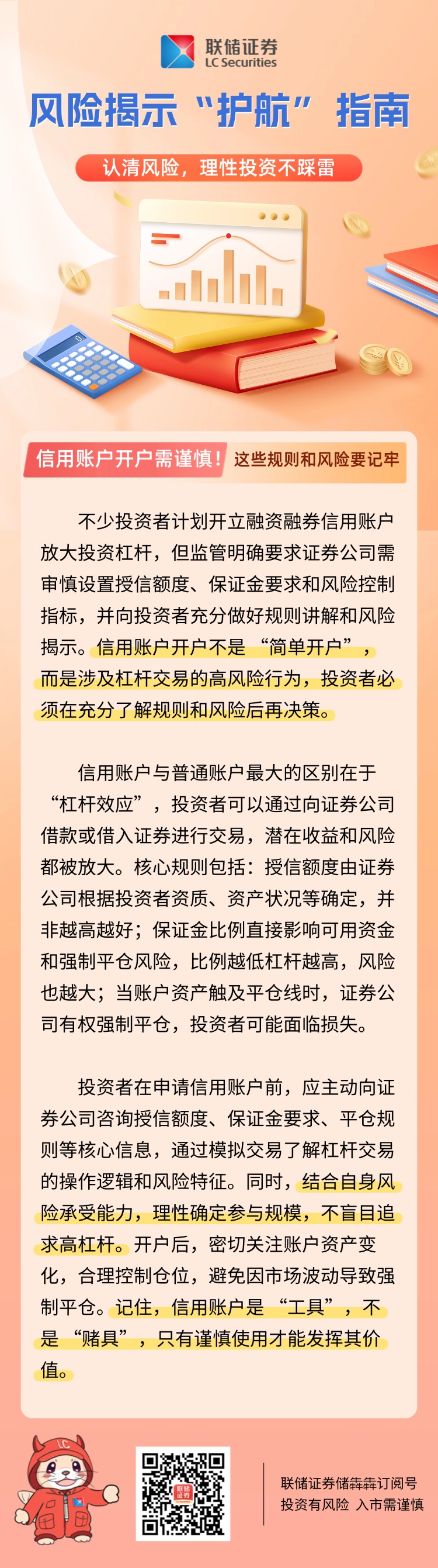 【风险揭示护航指南】信用账户开户需谨慎!这些规则和风险要记牢