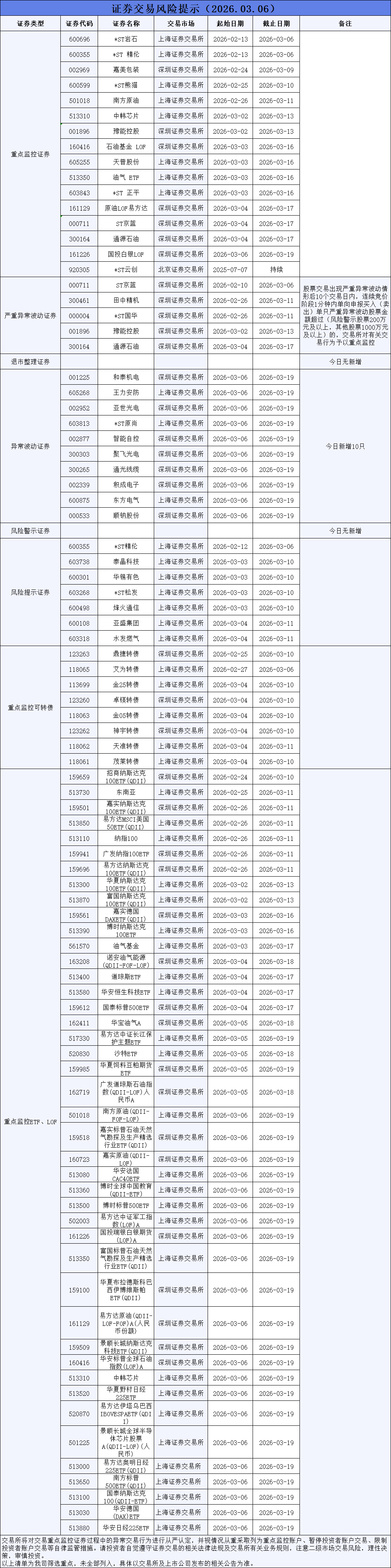企业证券交易风险提示(2026年3月6日)