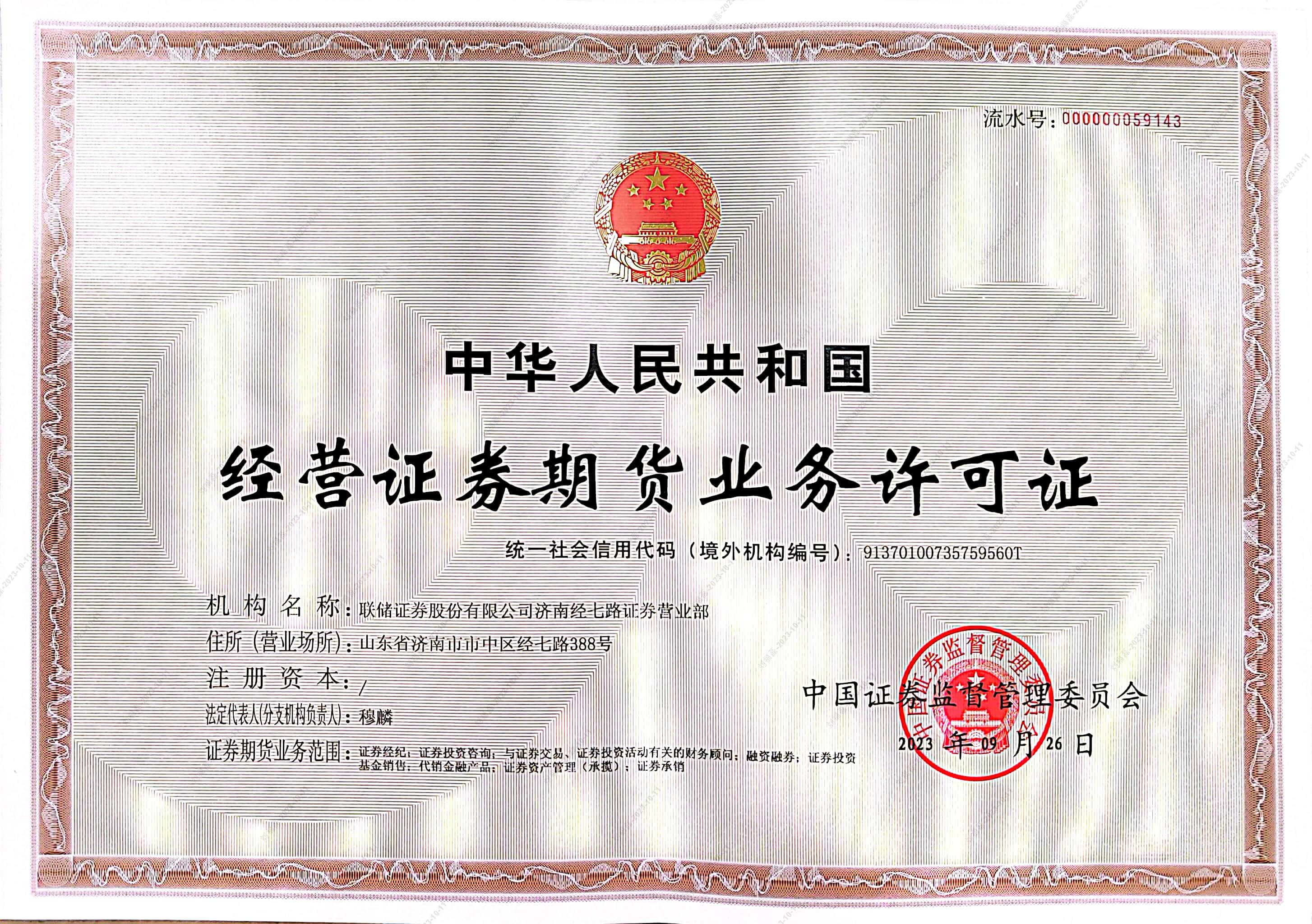 济南经七路证券营业部经营证券期货业务许可证